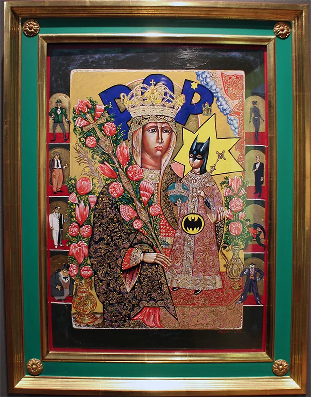 The bright color and blending technique all commingle with the traditional and contemporary images in Popov's skilled hands. I also enjoyed his collage altarpieces whose strangely dark humor drew me in to look more closely at the details.